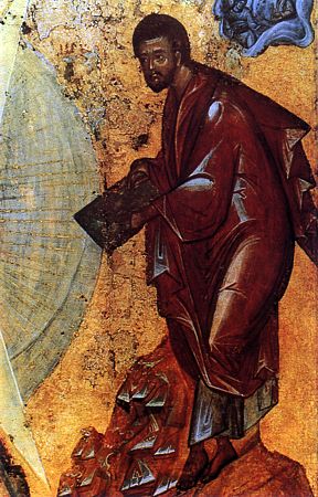 ”Issu de la tribu de Levi, Moïse naquit en Égypte, alors que les Hébreux étaient au service de Pharaon. Celui-ci, craignant l’accroissement et la prospérité grandissante du peuple juif, que ses pères avaient accueilli en Égypte pour remercier Joseph, avait donné l’ordre d’en massacrer tous les enfants mâles. Comme la mère de Moïse ne pouvait se résoudre à le livrer à la mort, elle eut l’idée de le confier aux soins de la Providence en le déposant dans une corbeille qu’elle laissa aller sur les eaux du Nil. L’enfant fut recueilli par la fille de Pharaon, qui lui donna le nom de Moïse — ce qui signifie: «sauvé des eaux». Élevé comme le fils même de la princesse, il maîtrisa bientôt toute la sagesse et la connaissance des Égyptiens. Parvenu à l’âge de quarante ans, Moïse tua un jour un Égyptien qui se battait contre un de ses frères de race. Il dut alors s’enfuir au pays de Madian pour échapper aux poursuites. Il y épousa Séphora, la fille du prêtre Jethro, et eut d’elle un fils, qu’il nomma Guerchom — ce qui signifie: «je suis étranger sur un terre étrangère». Dans cet exil, loin de son peuple, il se prépara à la mission que Dieu lui avait réservée et mena paître les troupeaux de son beau-père dans les solitudes des montagnes et du désert, avant de devenir pasteur du troupeau spirituel de Dieu. C’est pendant ces séjours au désert qu’il purifia son cœur et son esprit par la prière et la méditation continuelle des merveilles de Dieu. Un jour qu’il menait ses troupeaux sur la montagne du Sinaï (Horeb), Dieu lui apparut autant qu’il est possible à un homme de le voir. De ses propres yeux, Moise vit en effet un buisson qui brûlait en dégageant une lumière plus éclatante que celle du soleil, mais ne se consumait point. Il reçut ainsi comme une préfiguration du grand mystère de l’enfantement virginal et de la venue dans la chair de notre Sauveur, qui a bouleversé les lois de la nature tout en les préservant.